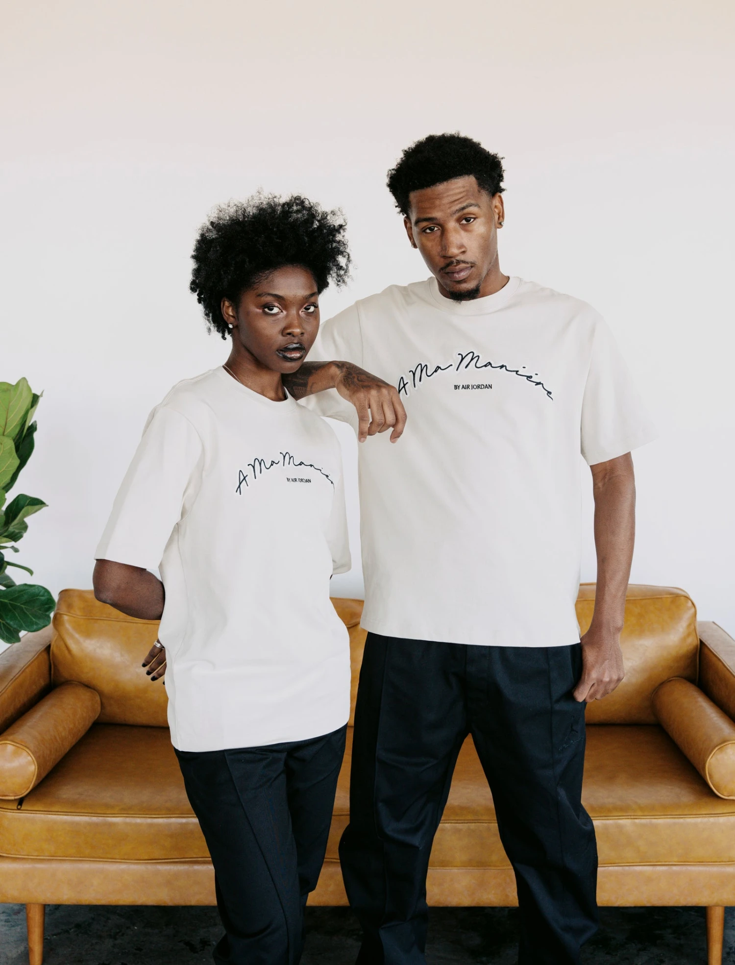 Unleash your personal style with A Ma Maniére x Jordan Brand classic short sleeve cotton t-shirt. Its regular-fit and crewneck design provide all-day comfort, while the bold embroidered logo texts on the chest and back exude confidence and individuality. Elevate your wardrobe with this must-have piece.