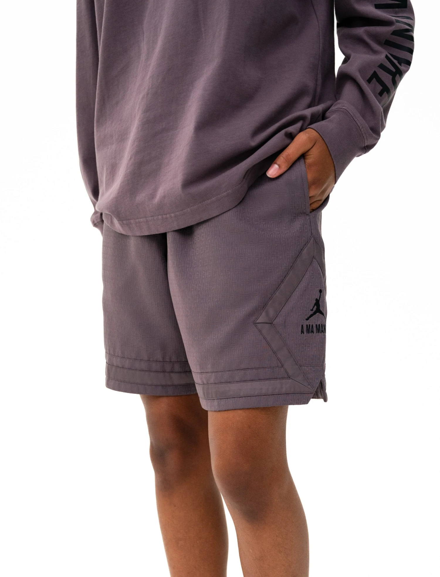 Indulge in the timeless A Ma Maniére x Jordan Brand Diamond Mesh Shorts. Featuring an elasticized drawstring waistband and multiple pockets, these shorts offer both comfort and convenience. Embroidered logos and monogram print add a touch of luxury, while the zip closure at the front allows for easy wear. Elevate your style game with these essential shorts.