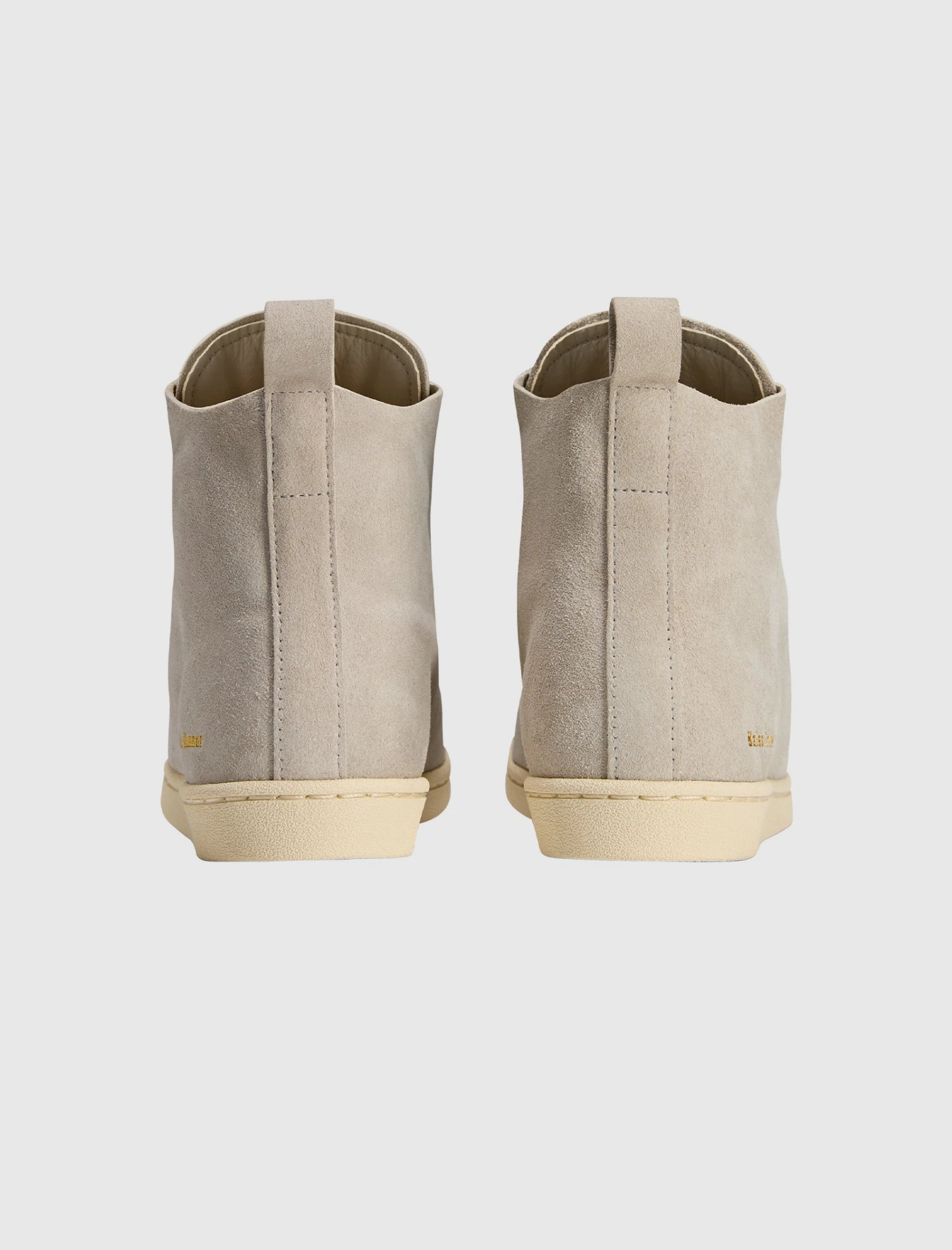 High top sneakers. Suede upper. Rubber protective shell toe. Front lacing. Perforated stripe motif patches stitched on the side panels. Stamped logo motif on the outer side panel. Low profile rubber midsole. Rubber outsole.