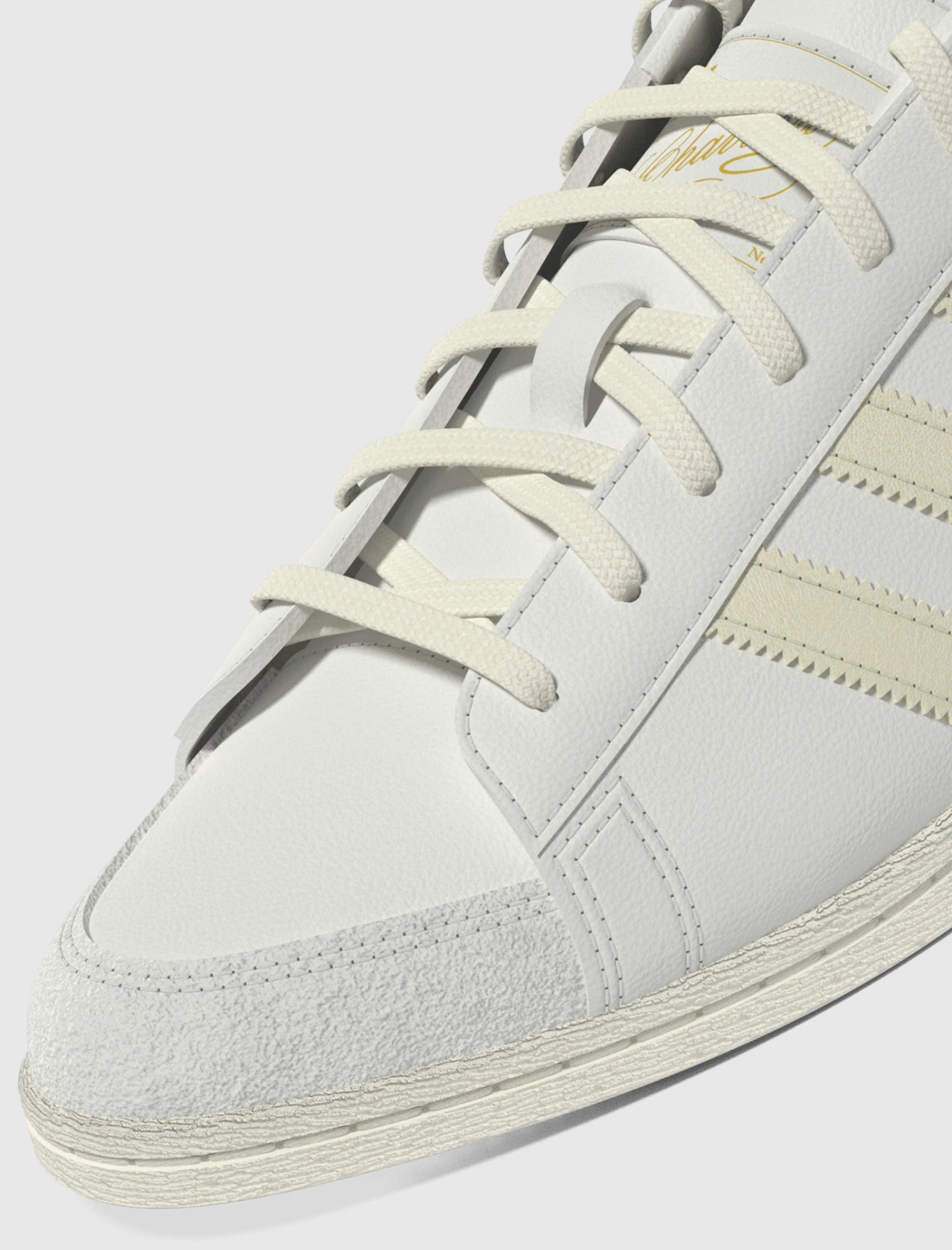 Low top sneakers. Leather upper. Rubber toe overlay. Leather stripe motif patches on the side panels. Front lacing. Leather flap lace cover with stamped branding at the center. Rubber midsole. Rubber outsole.
