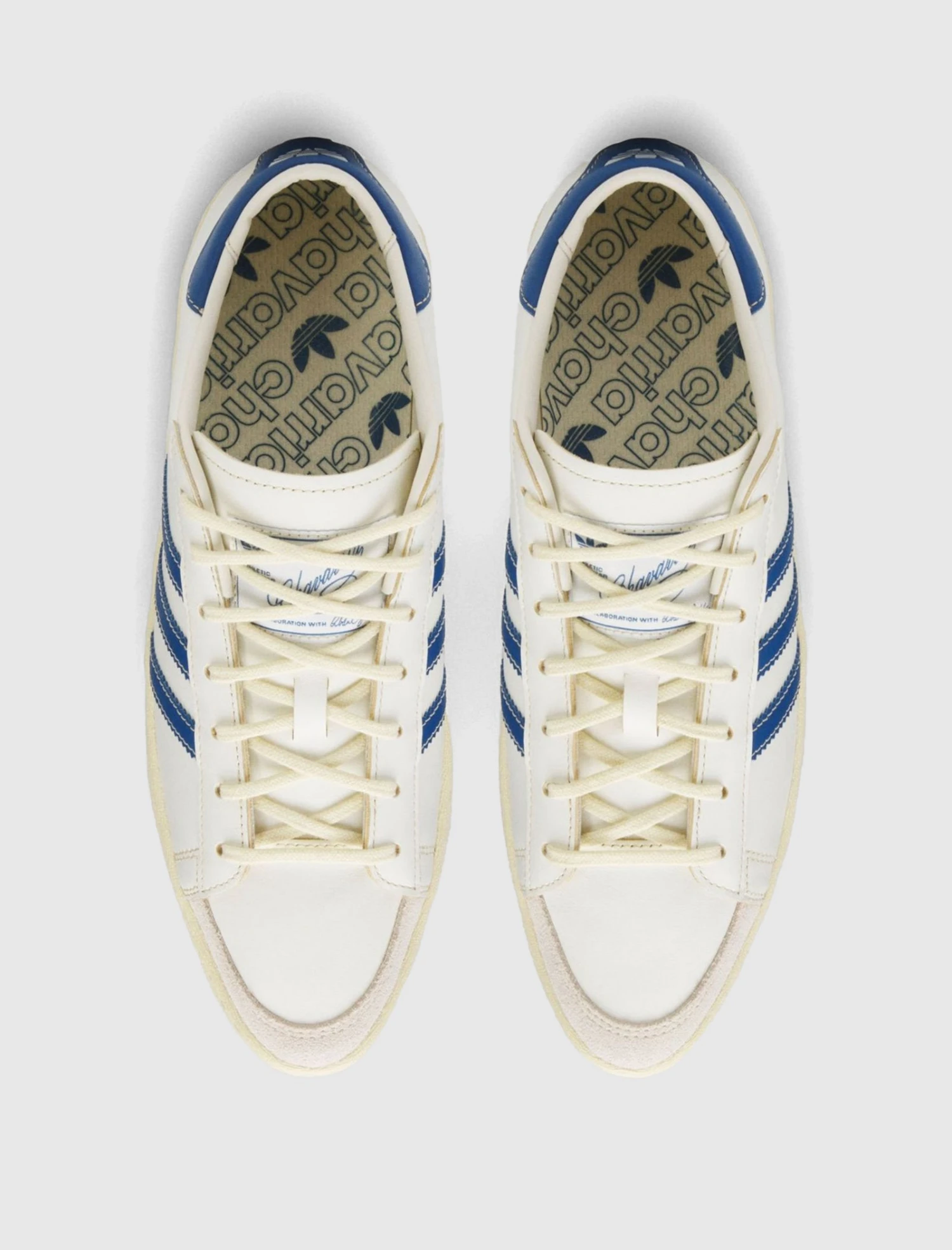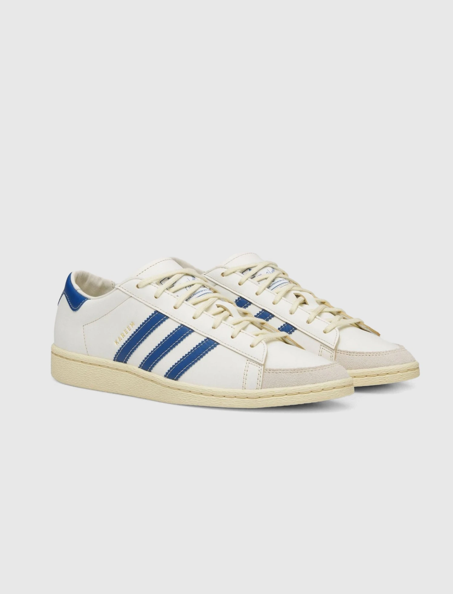 Low top sneakers. Leather upper. Rubber toe overlay. Leather stripe motif patches on the side panels. Front lacing. Leather flap lace cover with stamped branding at the center. Rubber midsole. Rubber outsole.