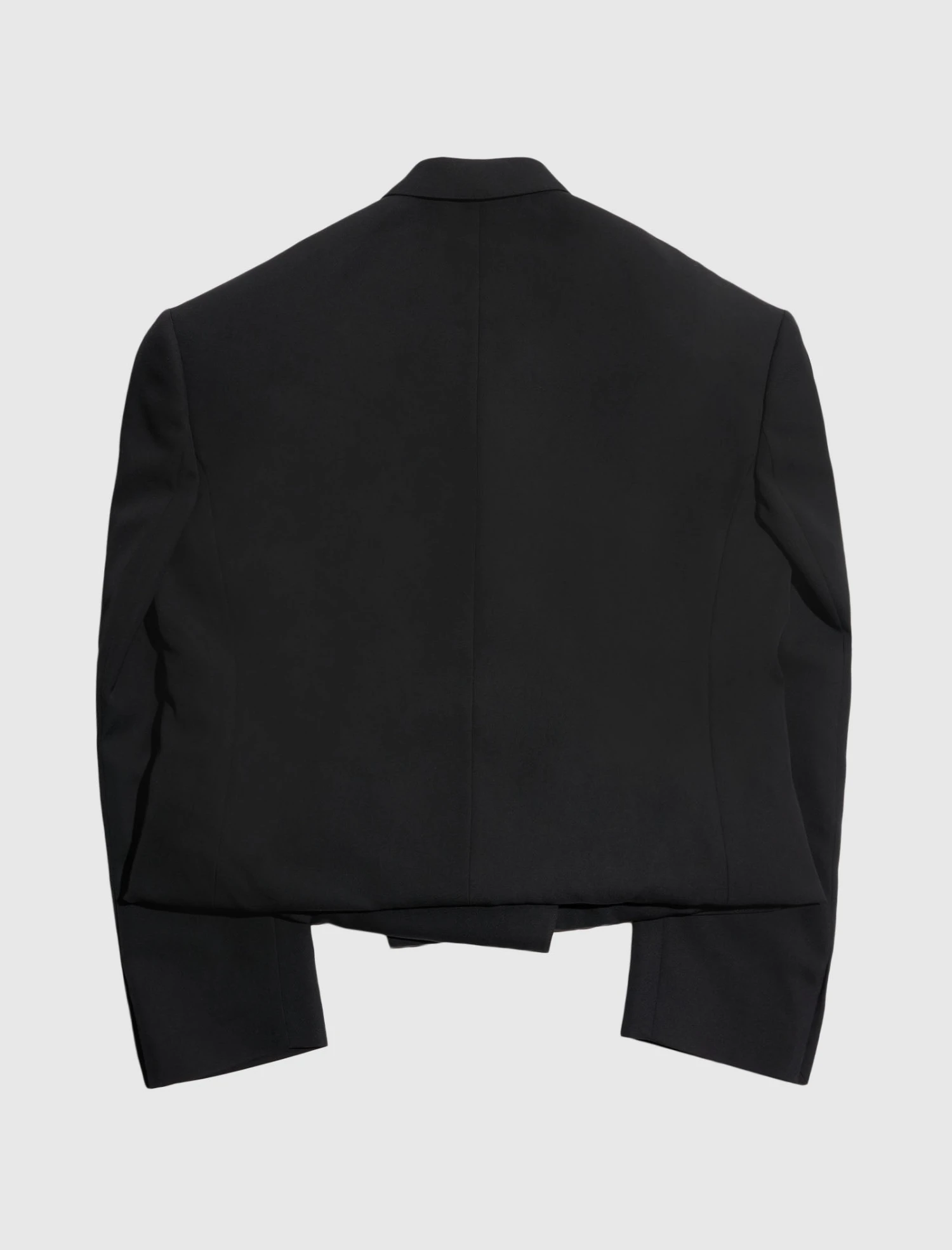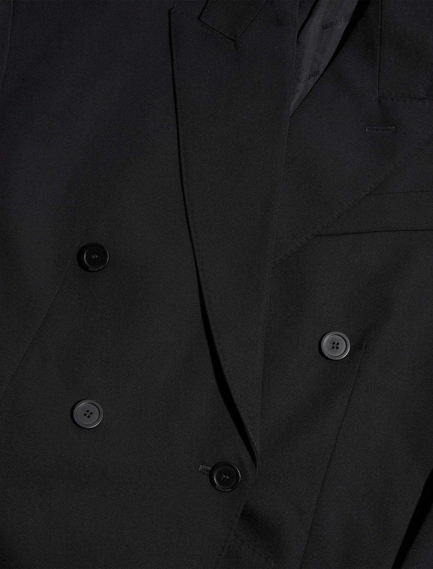 Indulge in the timeless elegance of Balenciaga’s tailored fold-over jacket. Featuring a double-breasted design, notched lapels, and functional pockets, this cropped blazer exudes sophistication. Button closures complete the polished look.
