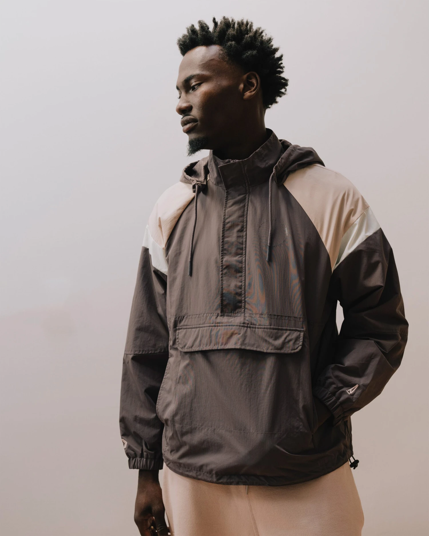 Elevate your style with the A Ma Maniére x Converse Relaxed-fit pullover lined anorak jacket. Featuring a detachable drawstring hood, large front flap pocket, and half zip and button closure, this jacket is perfect for any occasion. The embroidered logo print on the sleeve adds a touch of flair, while the elastic cuffs and hem provide a comfortable fit.