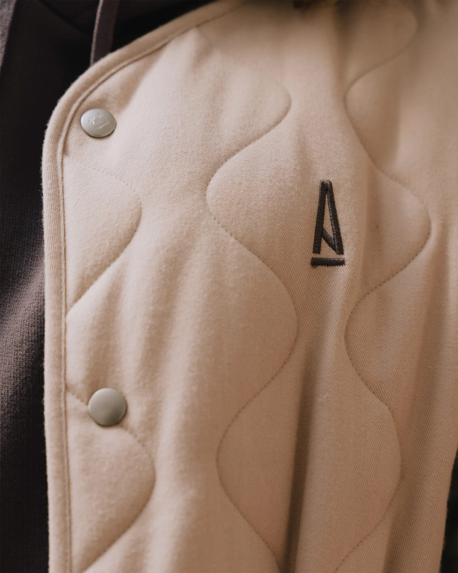 - Snap-button closure at sleeves and center front