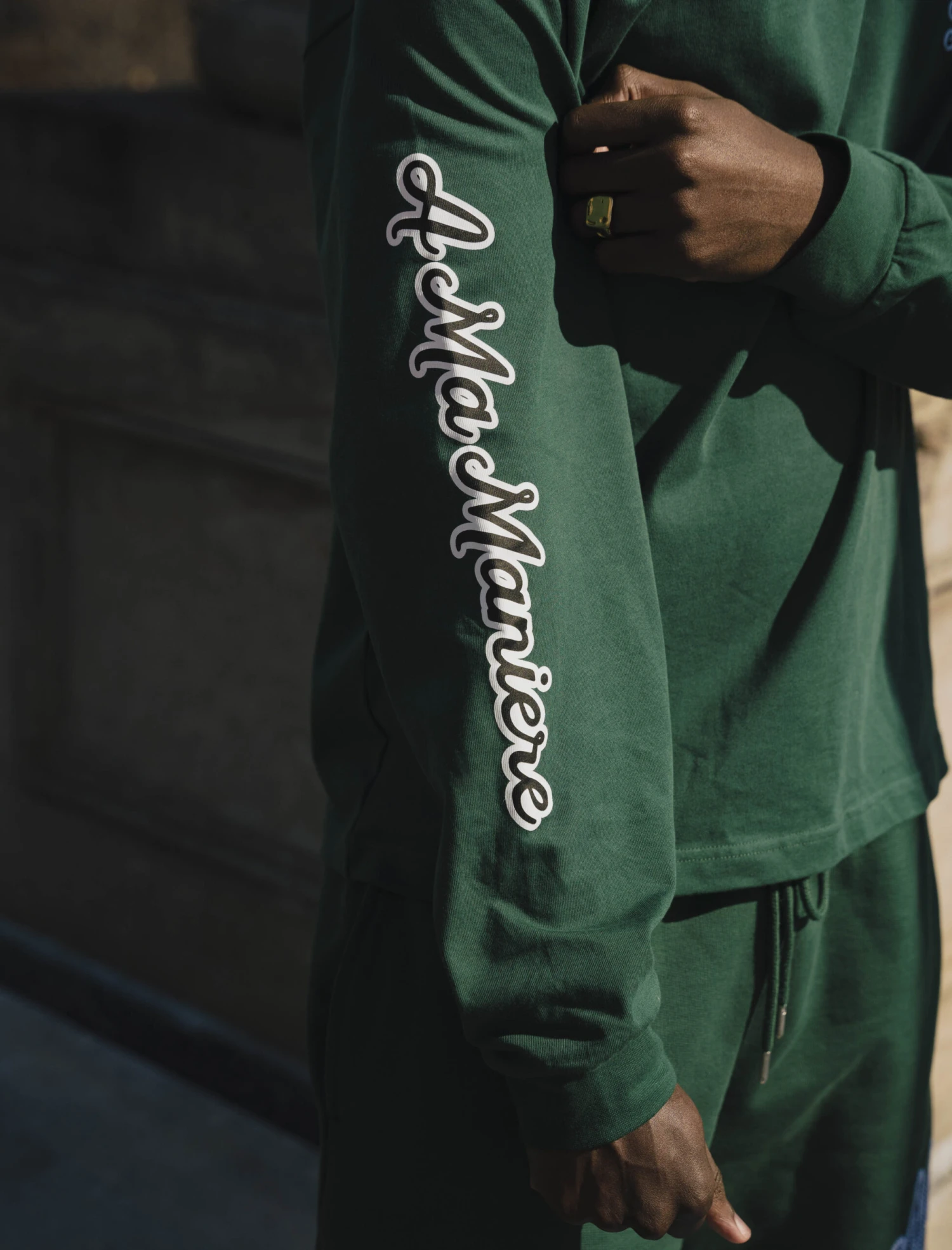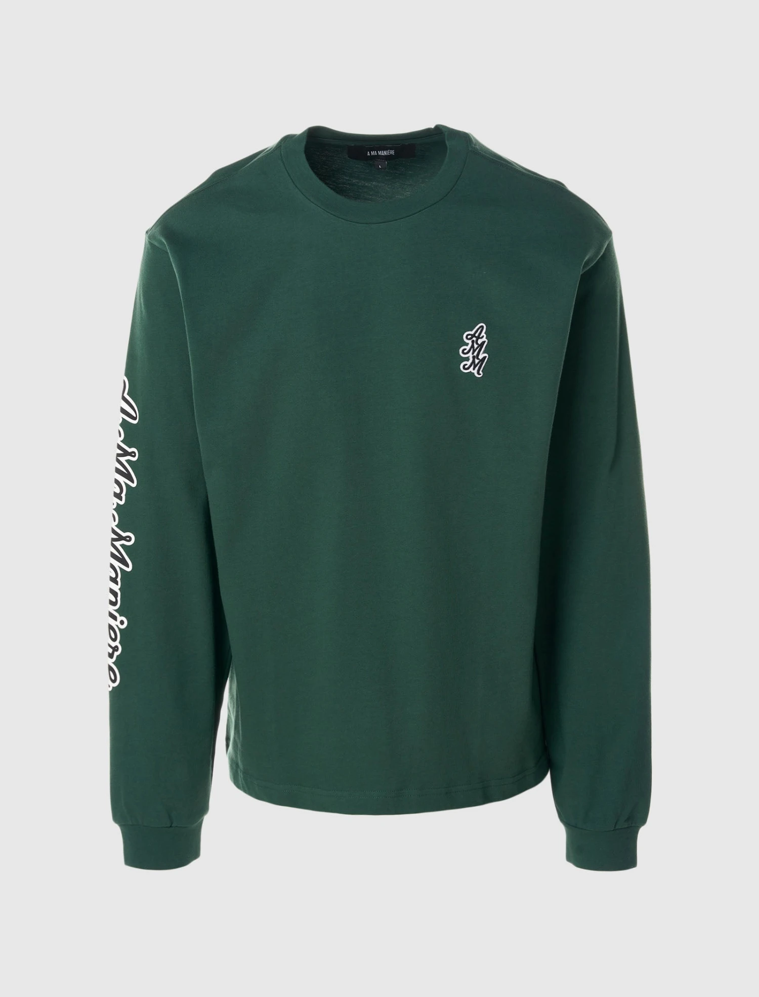 Our long sleeve tee, created in the USA, provides the utmost in comfort and style. The embroidered cursive brand letters lend a classy casual look. The A Ma Maniére logo long sleeve tee is an important addition to any wardrobe. Make it yours and enjoy the art of elegant living. Get yours now and take your wardrobe to the next level!