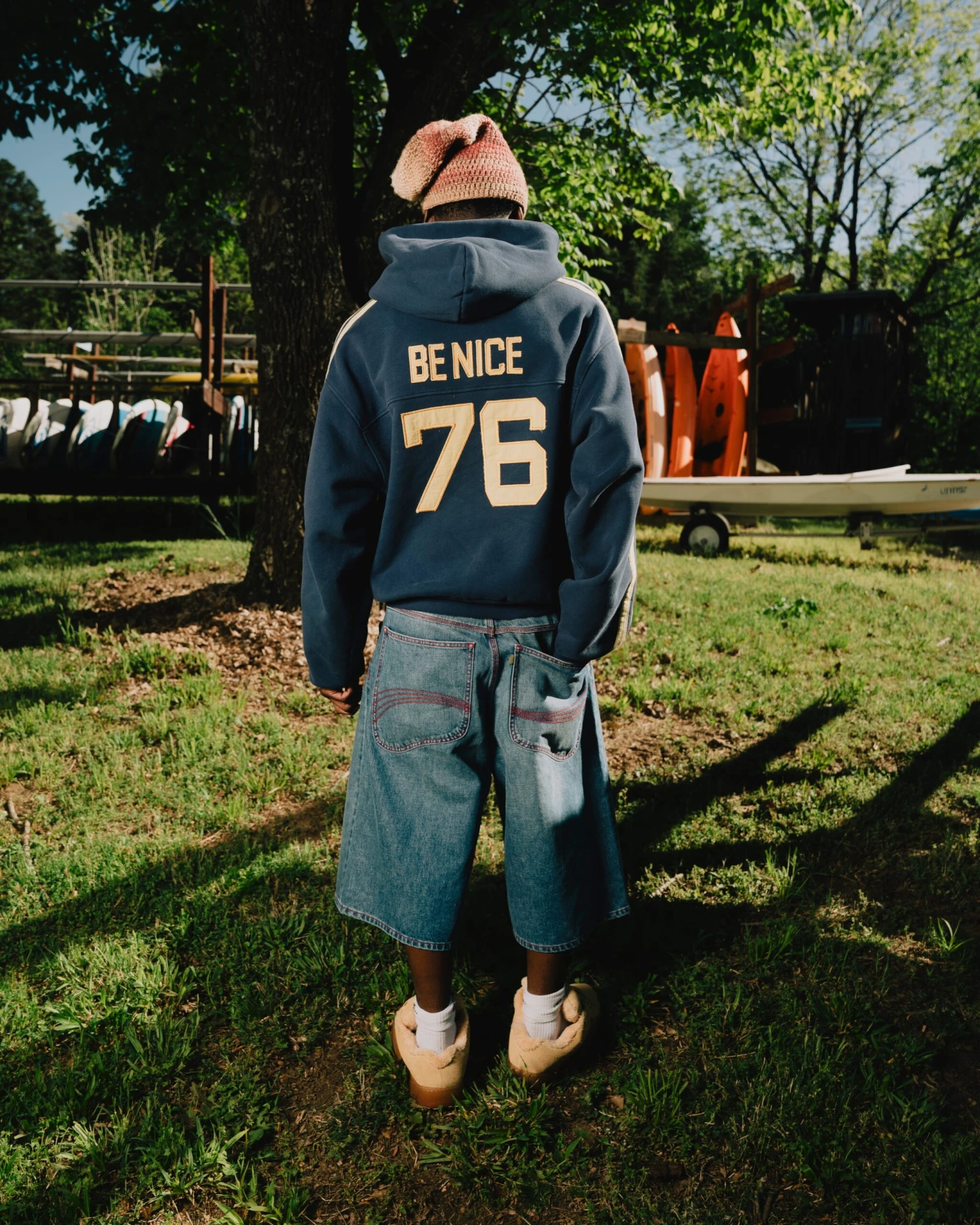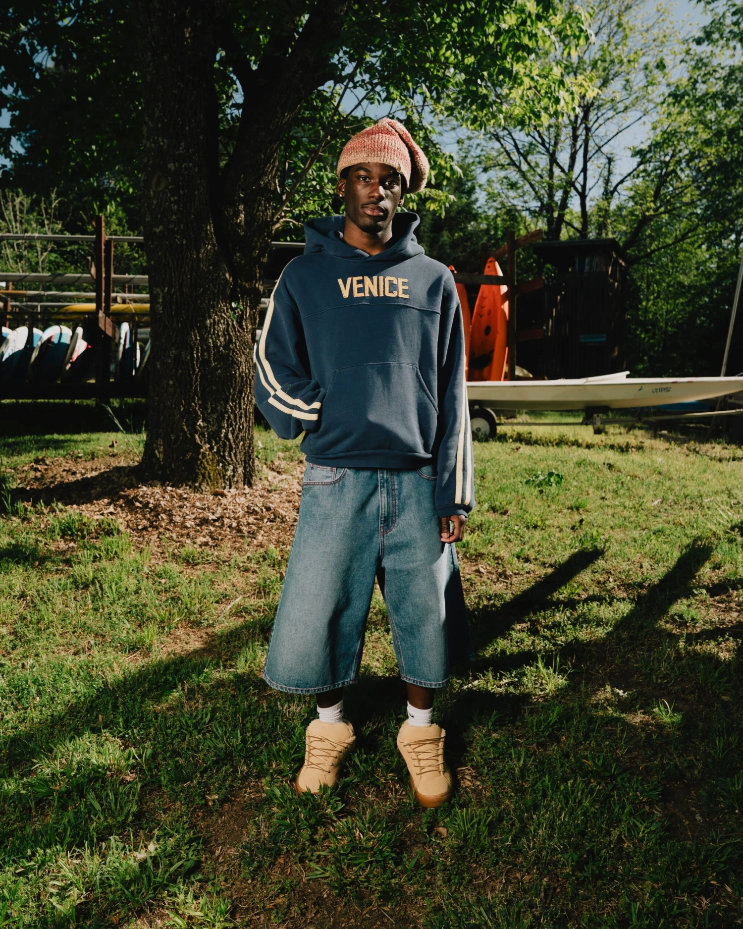 Experience the iconic California-cool style with these wide-leg shorts, inspired by skate culture. Made with rigid denim and highlighted by eye-catching retro-red topstitching for a bold and impactful look.