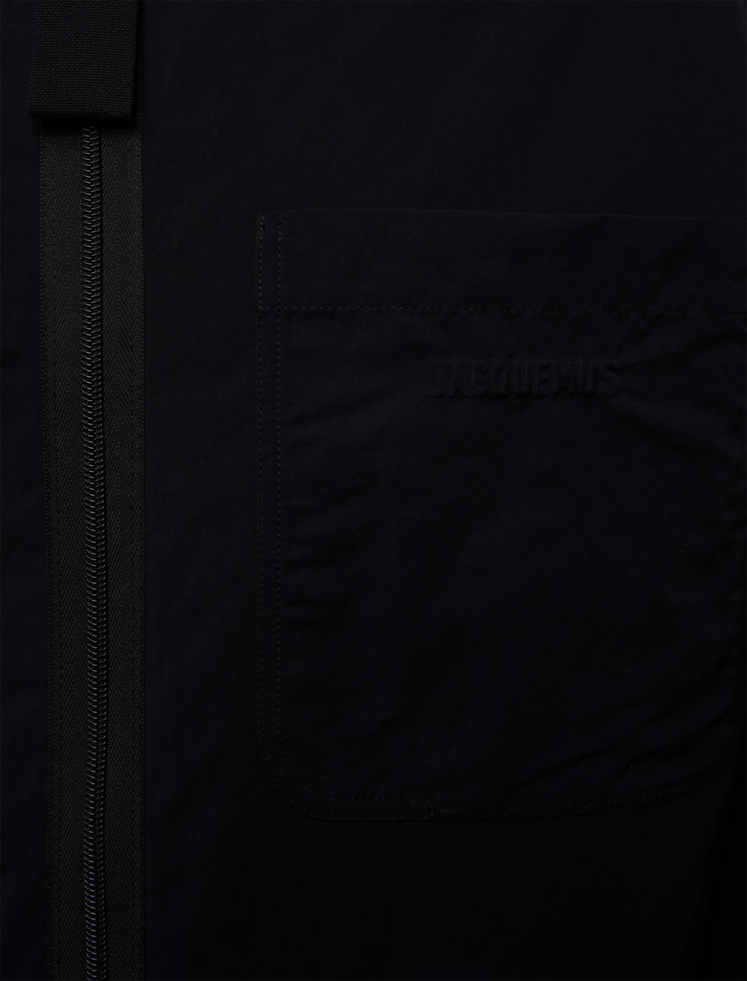 Experience ultimate style with the Jacquemus Le Blouson Linu Black Polyamide Jacket. This sleek and versatile jacket features a pointed collar, front zipper closure with a stylish grosgrain puller, and a patch pocket on the breast. Its rounded shoulders, long sleeves, and button-tabs at the side edges add a unique touch while the boxy fit and straight hem provide a flattering silhouette. Elevate your wardrobe with this must-have piece.