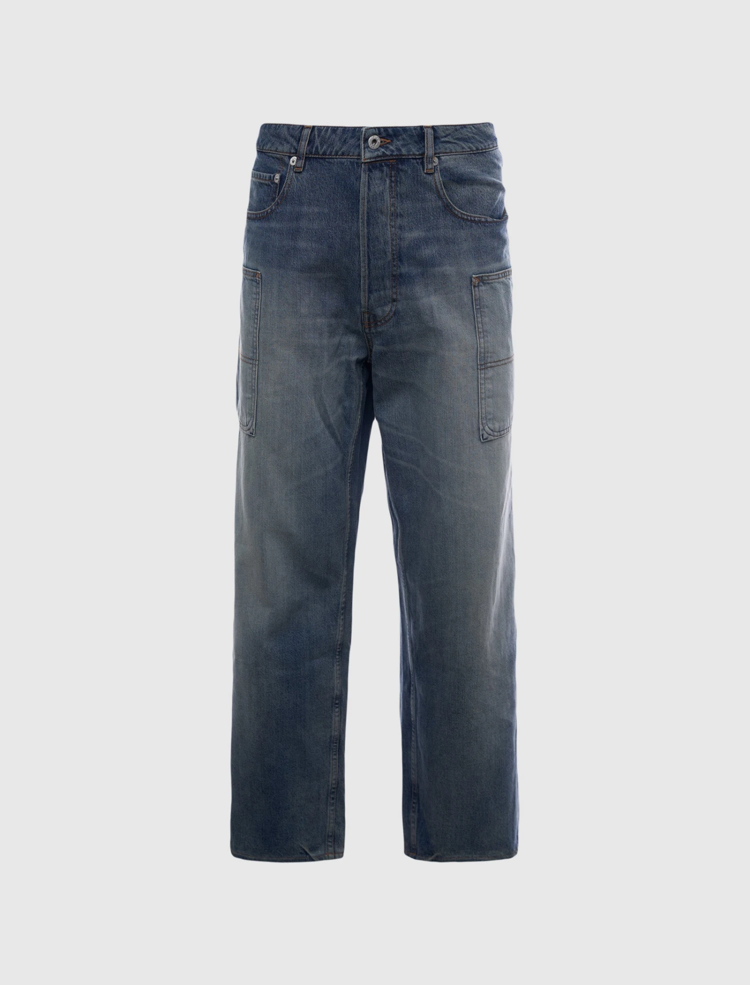 Discover the ultimate comfort and style with Kenzo’s wide-leg cargo jeans. Featuring five pockets and two cargo pockets, accented with tonal stitching and a washed finish for a modern and edgy look. Complete with an embossed woven logo jacron on the back, these jeans are a must-have for any fashion-forward individual.