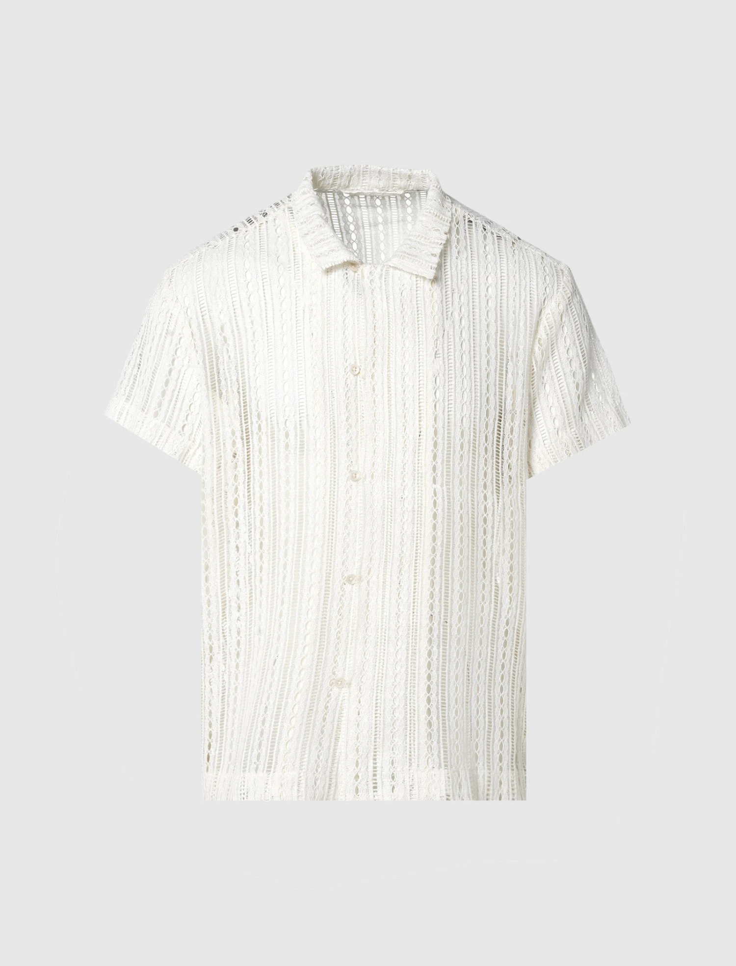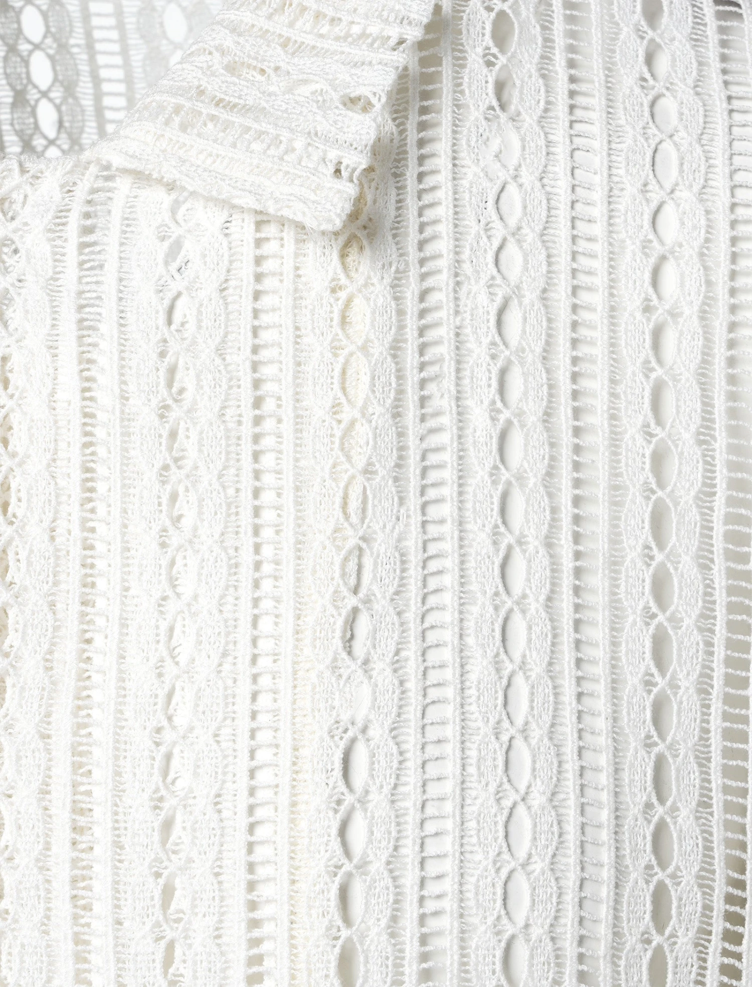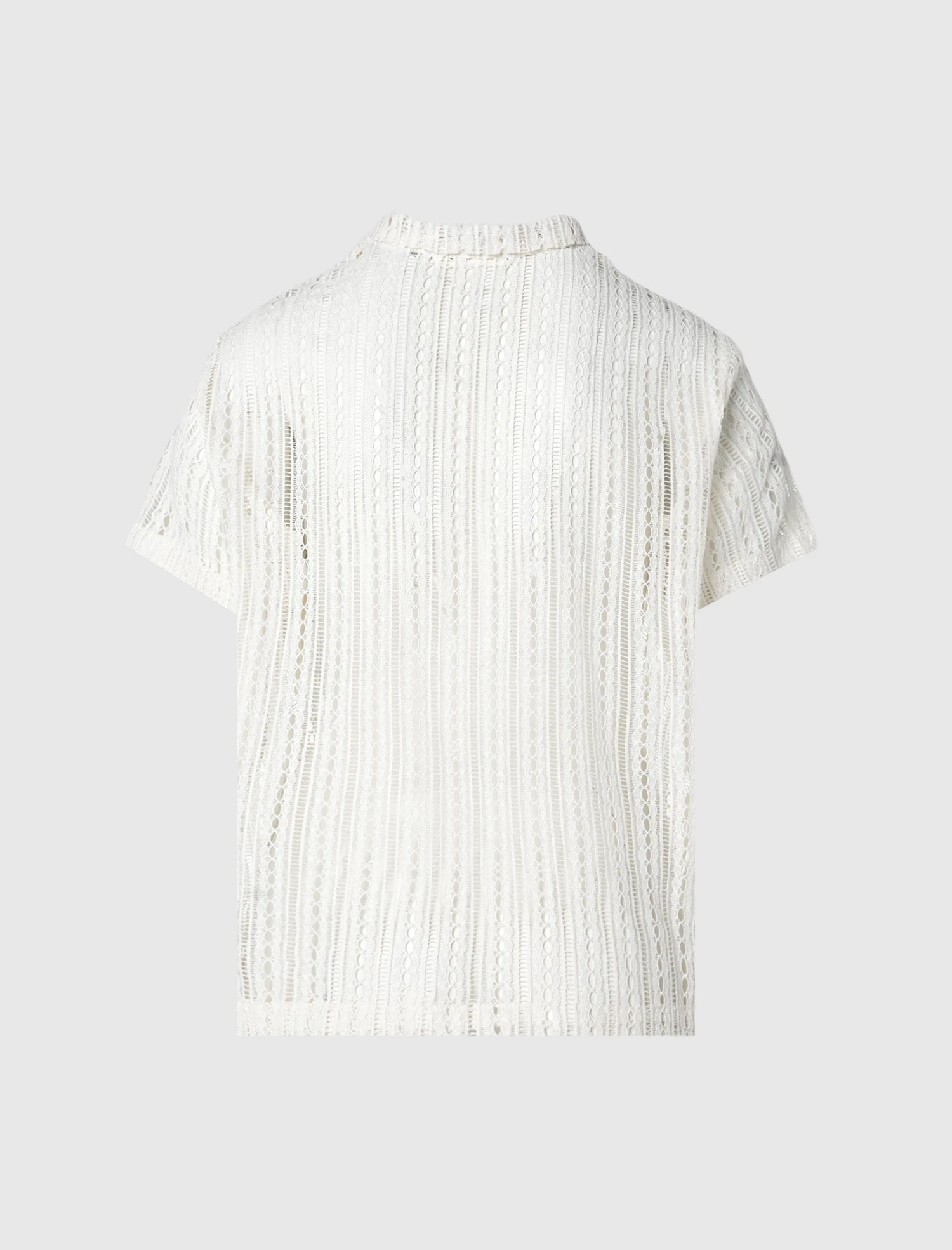 Experience the timeless elegance of this Bode shirt, paying homage to the intricate machine lace of the 20th century. Our dedication to authenticity shines through as we meticulously recreate the original lace for this stunning design.