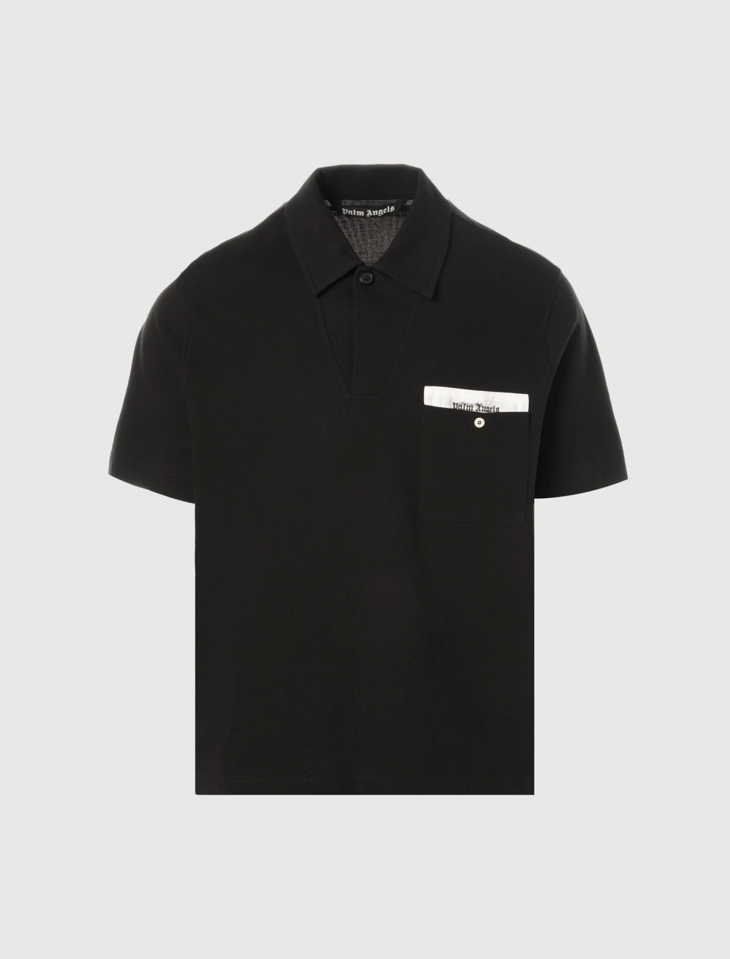 Regular-fit short sleeve knit polo. Classic collar. Single pocket at chest featuring logo text. Button closure at front.