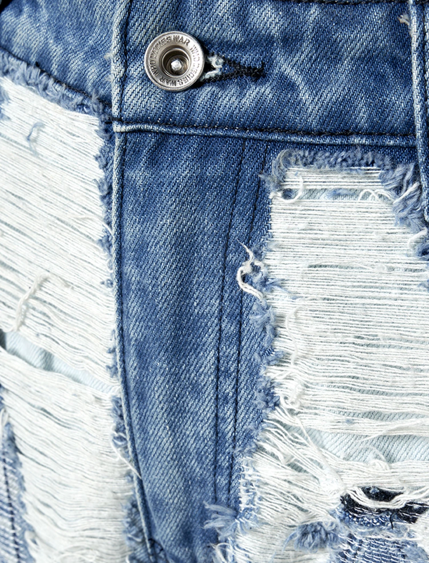Feel the power of Who Decides War classic-fit flared denim jeans. Featuring five pockets and embroidered graphics, these jeans are a statement piece with distressed details that exude attitude and style.