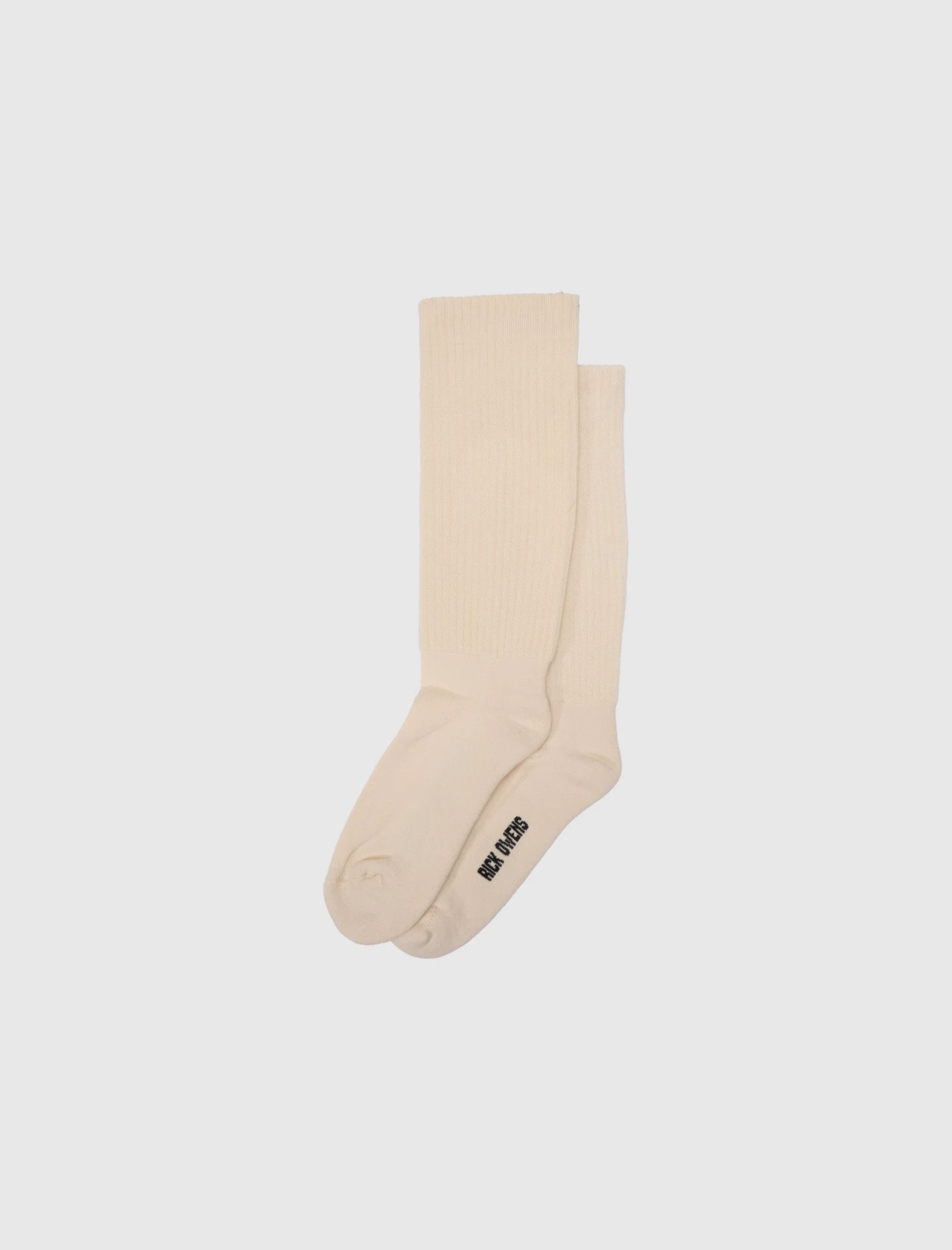 Knee-high length socks. Ribbed leg opening. Branding visible on the under-foot.